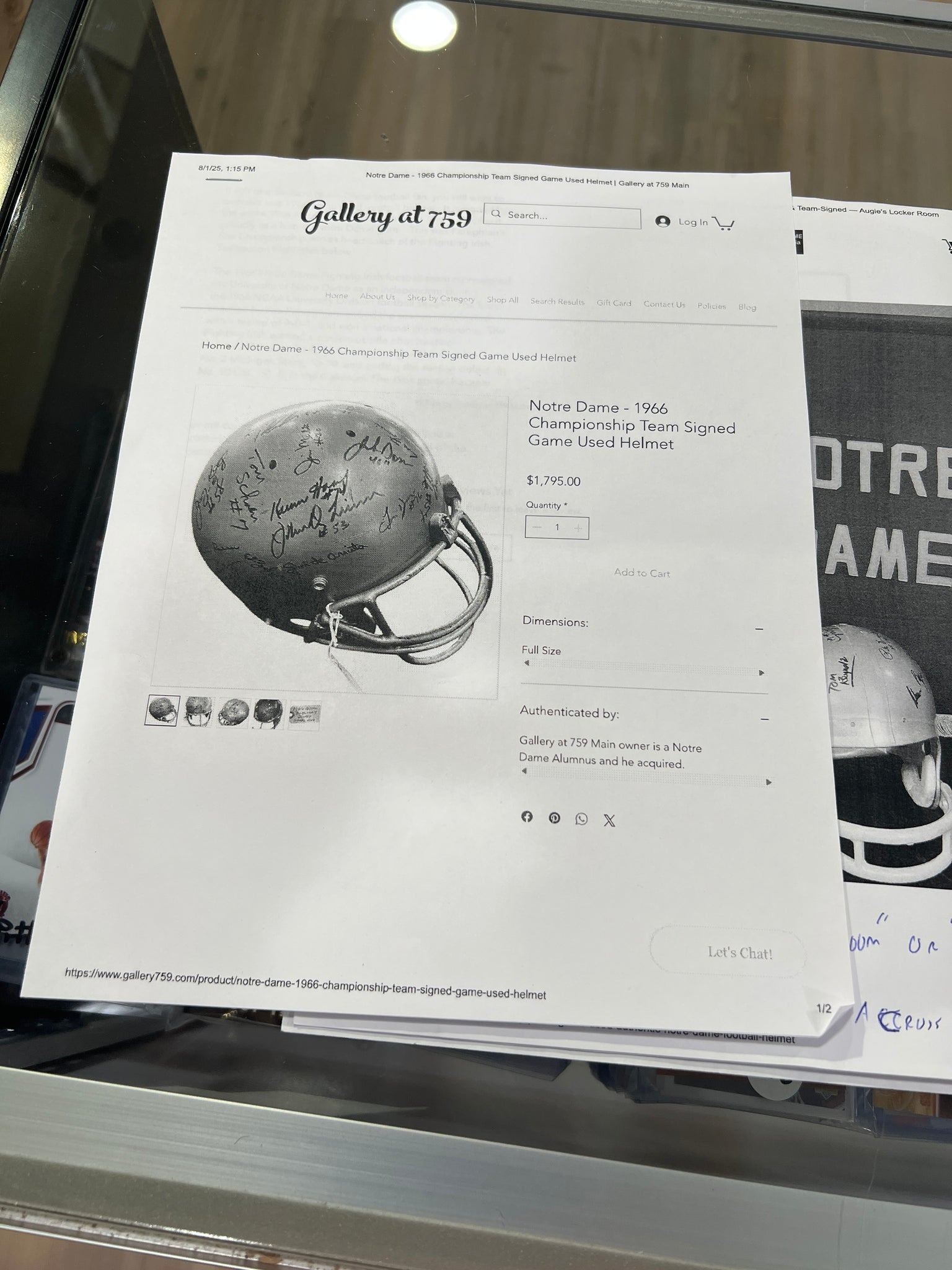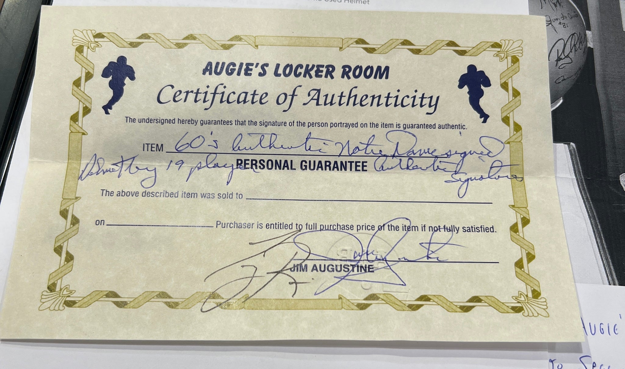 1966 Notre Dame national championship signed helmet. Comes with certificate from Augie’s Locker Room in South Bend.