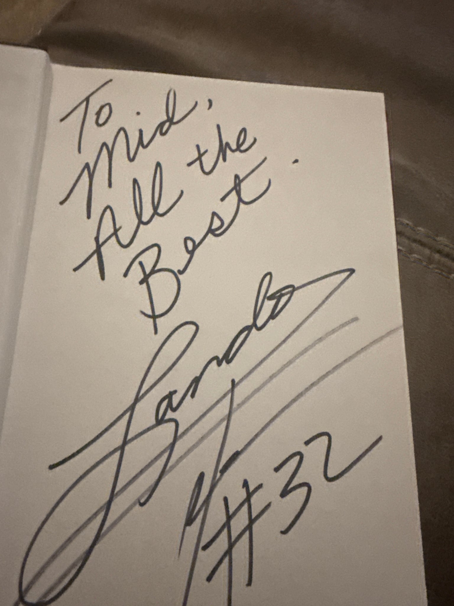 Autographed by Landon. The autograph is personalized.