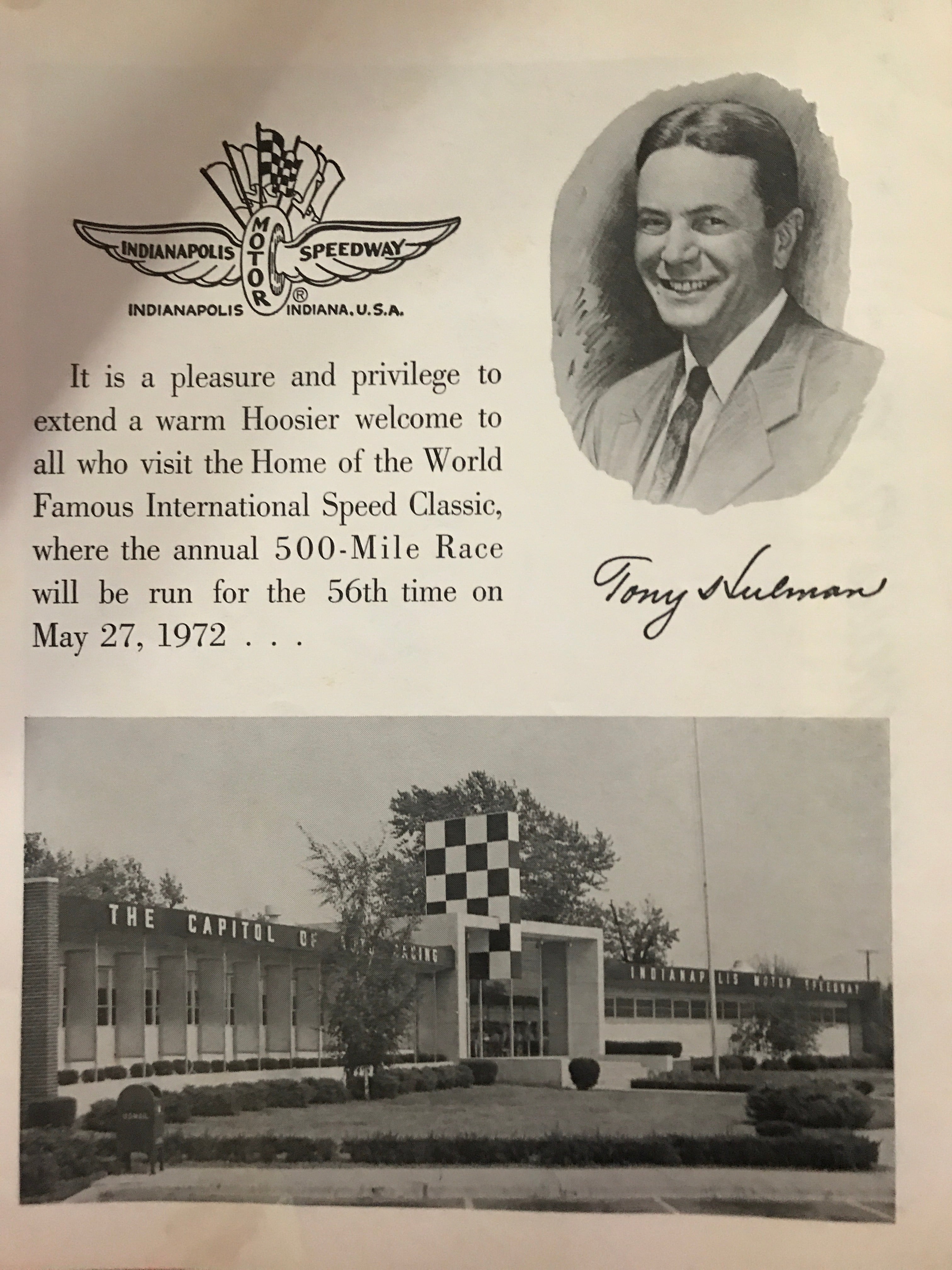 1972 Tony Hulman Indianapolis Motor Speedway Mailer