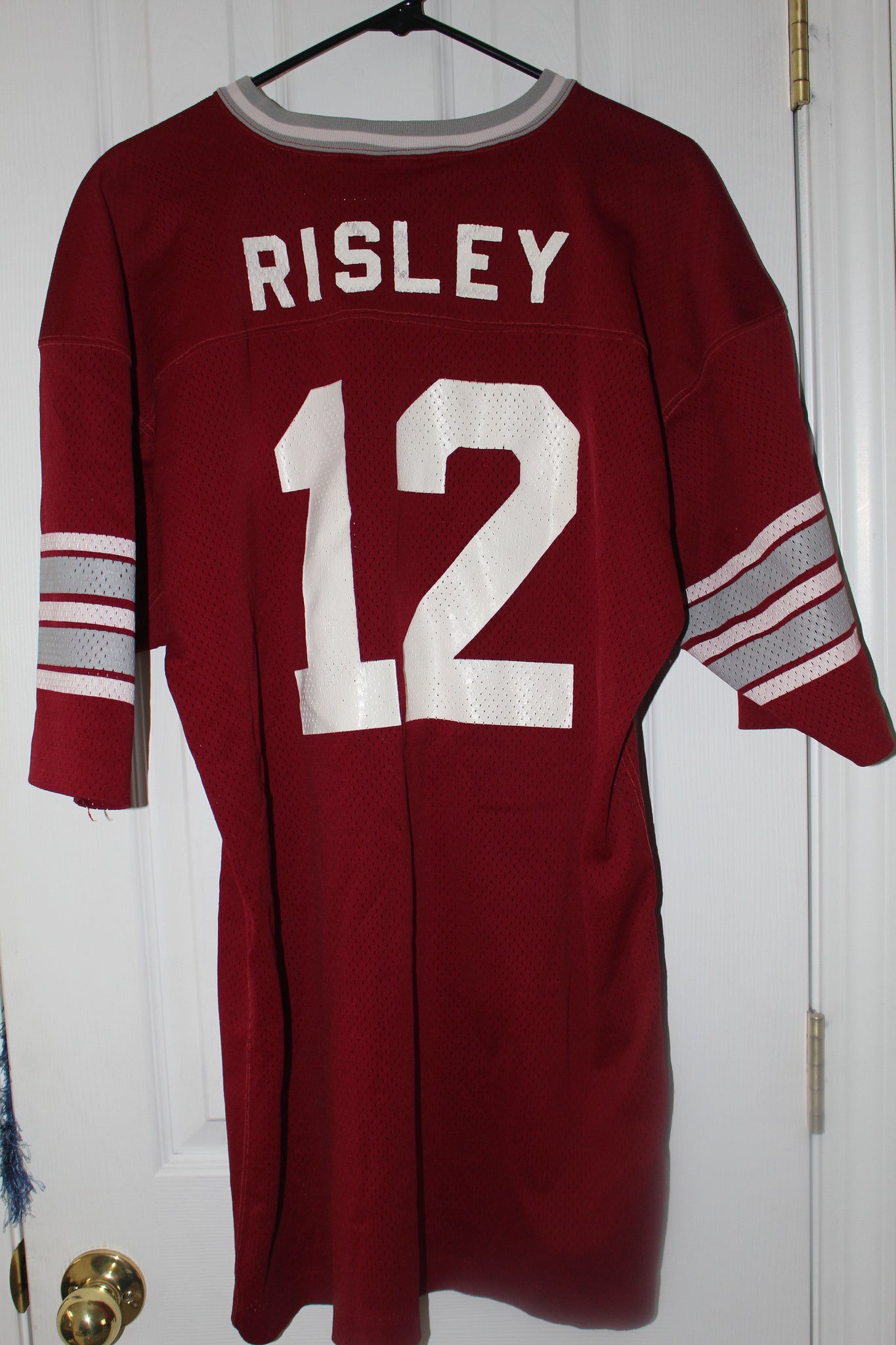 1977 Steve Risley Game Worn Lawrence Central, Indiana High School Football Jersey. Risley was a HS All American in both football and basketball and is the Indiana Hall of Fames in both sports. The jersey will be accompanied with a letter of authenticity signed by Steve.