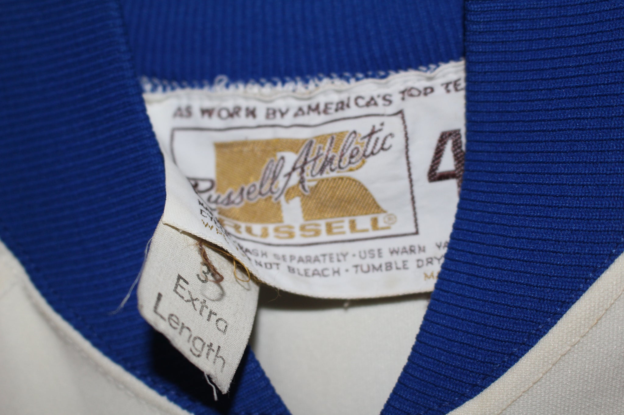 1980's Indiana Pacers Game Worn Warm Up Jacket. The jacket is a Russell Athletic Size 46 with 3 inches added. Unsure of exact year but guessing mid 80's, player that wore is unkown as well.