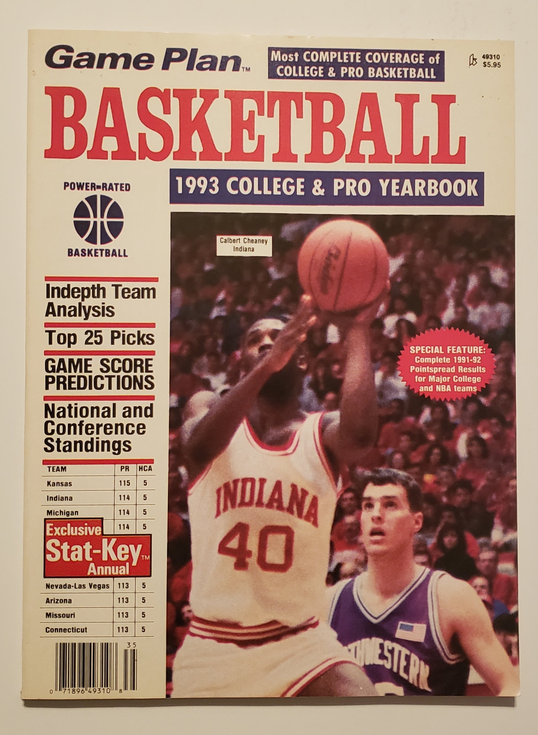 This is the Game Plan 1993 College and Pro Basketball Yearbook featuring Calbert Cheaney on the cover.