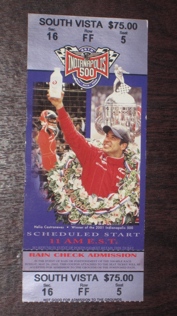 2002 Indianapolis 500 Ticket. THIS ITEM HAS FREE SHIPPING!