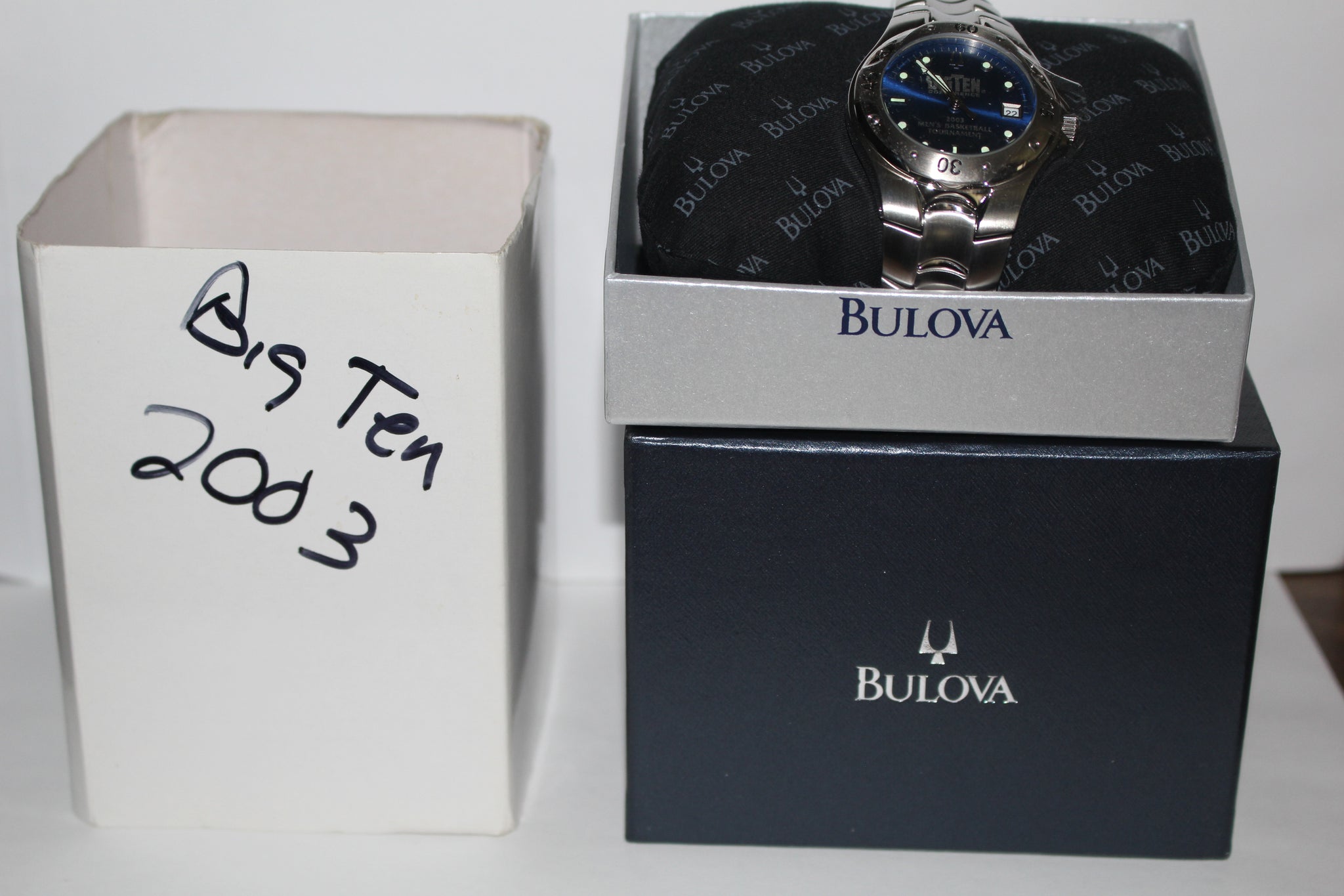 2003 Big Ten Tournament Bulova Watch issued to a member of the Indiana University Basketball Team. The watch has not been worn and comes in original box and outer sleeve. The watch will be accompanied with a letter of authenticity from the original recipient of the watch.