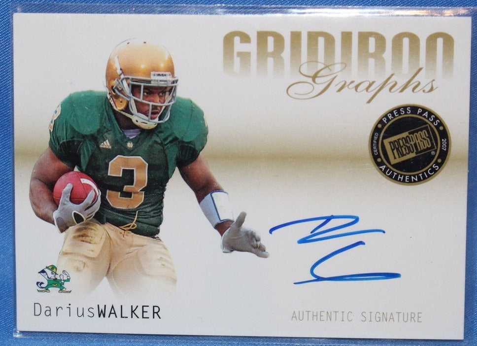 2007 Press Pass Gridiron Graphs Darius Walker Notre Dame Autographed Card #GG-DW. This item ships free!