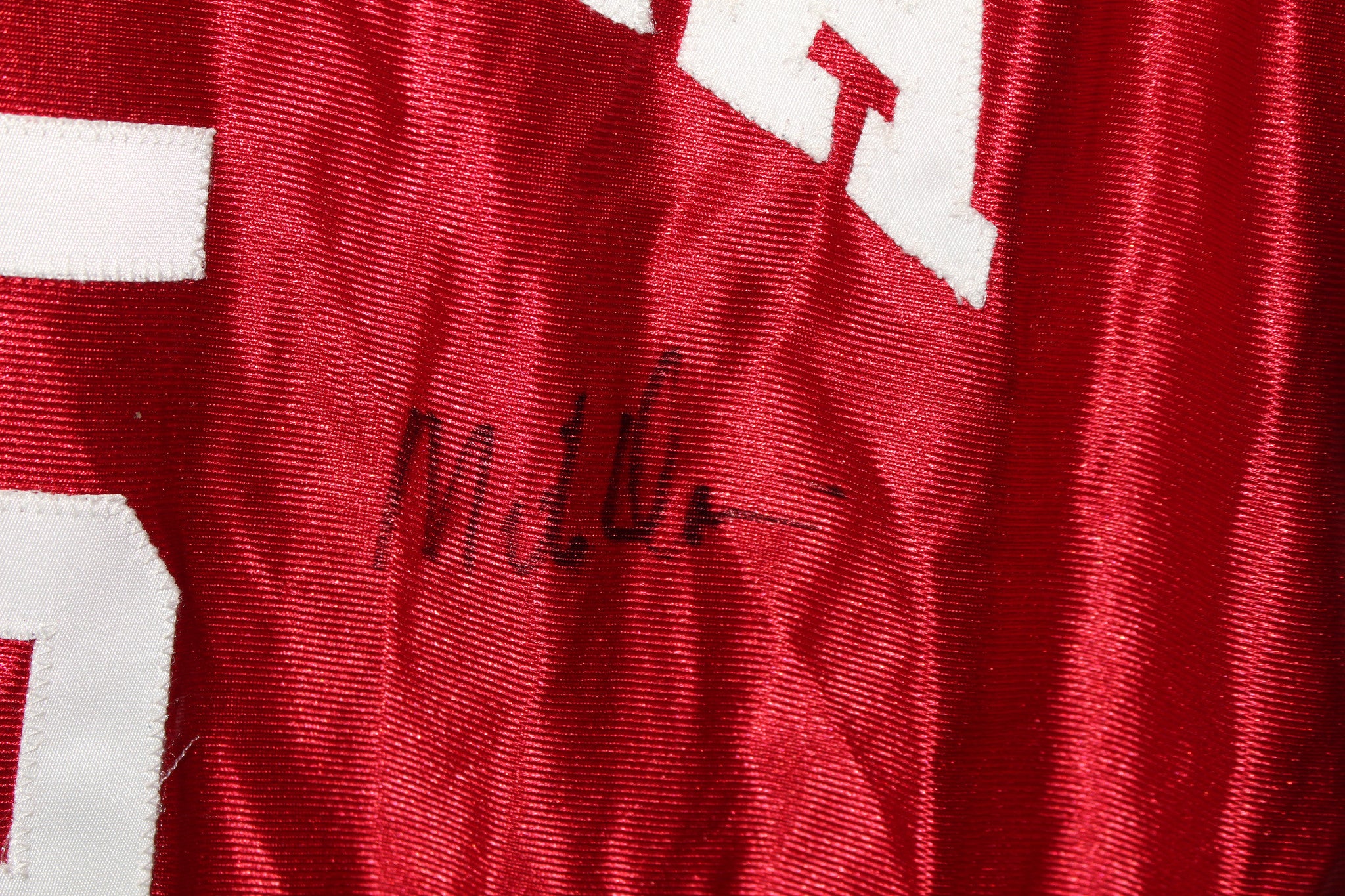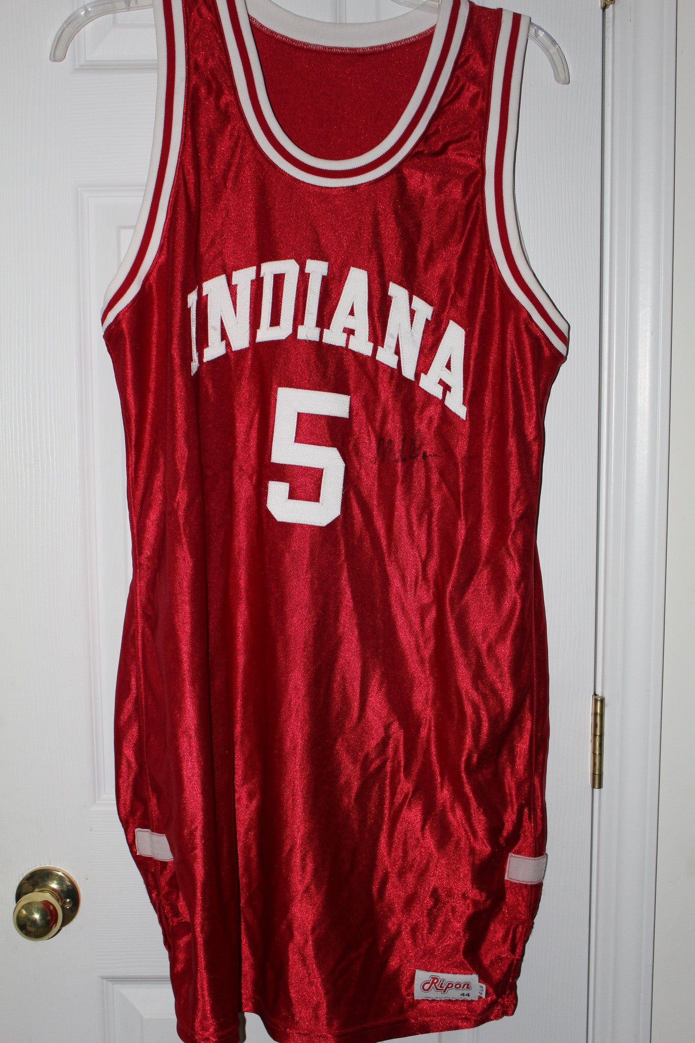 George Leach Indiana University Game Used Basketball Jersey. The jersey is a Ripon Size 44 with 4 inches added. The jersey is signed just right of the number by former coach Mike Davis. Velcro was placed on jersey to hold it inside the trunks.