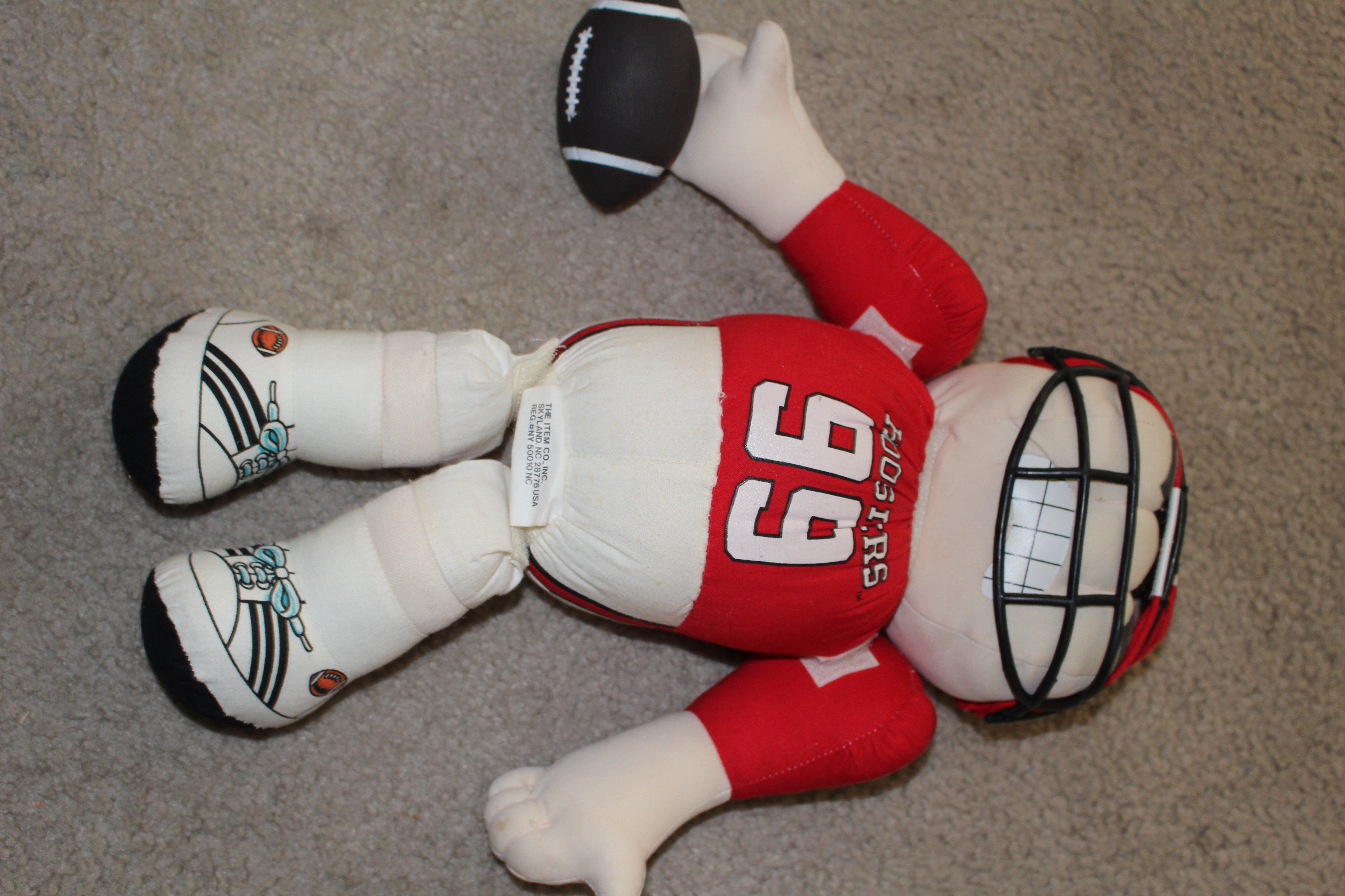 Indiana University Football Plush Doll. The arms and legs are attached with Velcro and can be removed.