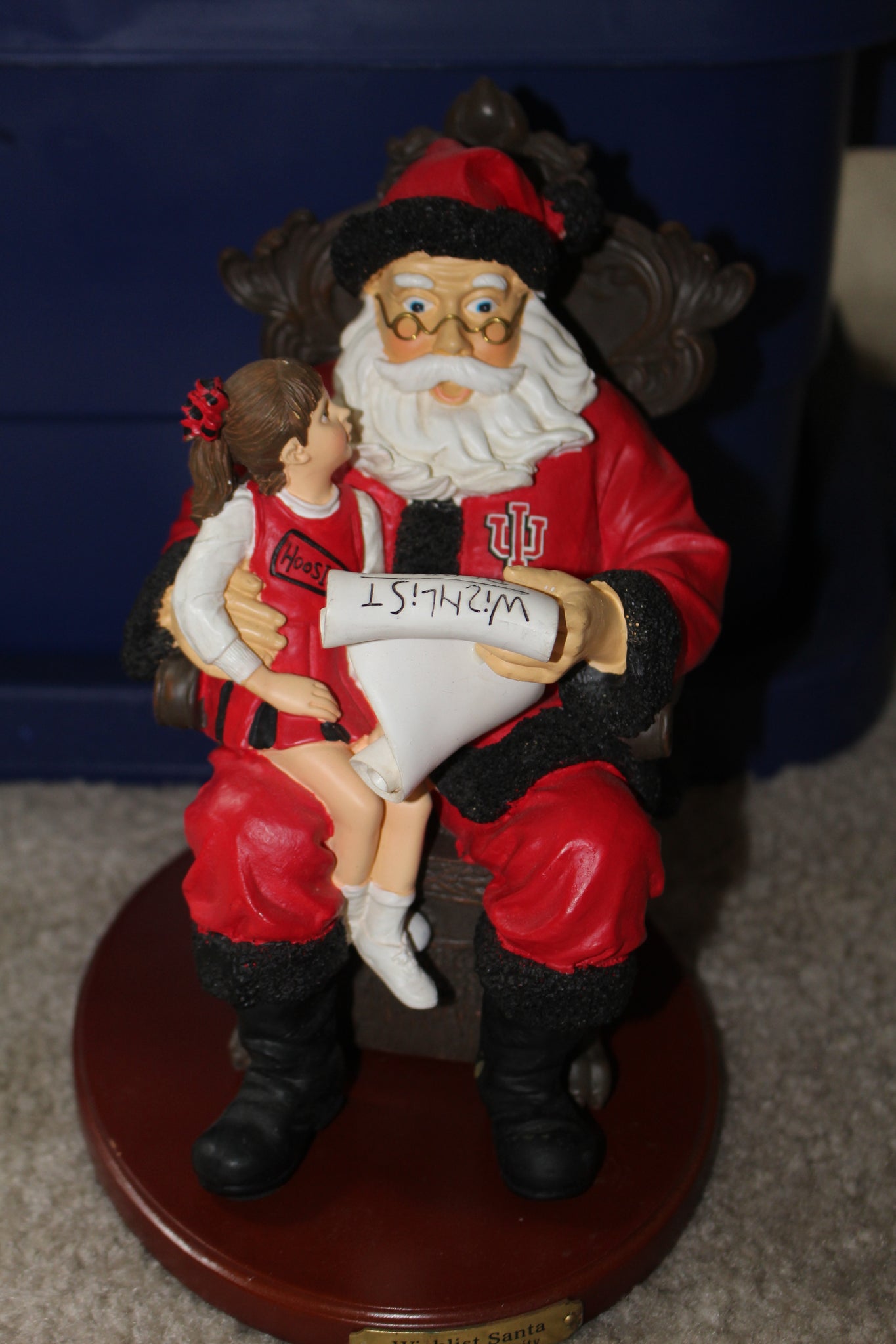 Indiana University "Wishlist Santa" with wooden base. A great item for any Hoosier Fan.
