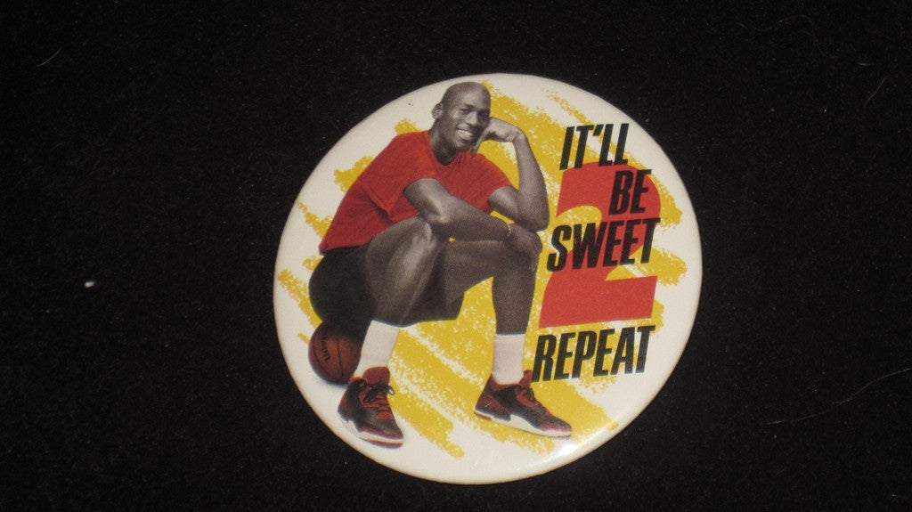Micheal Jordan Pinback button, reads it "It'll Be Sweet to Repeat". A great vintage button.
